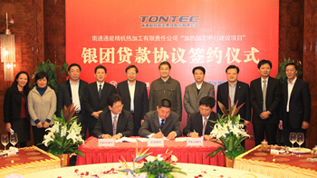 11月7日下午,通能精机“热加工中心建设项目”银团贷款签约仪式隆重举行,通能精机项目一举签定融资4.4亿元授信协议。市财政局局长陈照东、国资委主任李桂顺、博彩公司排名 董事长杜永朝、总经理陆强新以及工商银行南通分行刘小全行长、上海浦发南通分行李建宏行长、南通科技总经理凌卫国等出席签约仪式。 通能精机建设项目是南通科技重点建设项目之一,总投资10亿元,建成后将成为苏北地区乃至华东地区最大的热加工中心。此次银团贷款协议的签订,将为建设中的通能精机提供了强有力的资金保证,创下了南通科技单笔最大的授信纪录。 签约仪式上,通能精机总经理武立新与银行代表签订贷款协议,南通科技凌卫国总经理与银行代表签订担保协议。工商银行、浦发银行的两位行长讲话预祝签约仪式取得成功,认为,南通科技具有广阔发展前景,银行将不遗余力支持企业发展。南通科技总经理凌卫国表示将全力以赴做好项目建设,力争早投产、早获益。 |