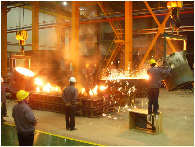 自南通机床厂创建以来,铸造生产一直是采用冲天炉熔炼浇注,随着时代的变迁、科学的进步、企业的发展,新通能规划采用了具有世界先进水平的德国ABP公司生产的感应电炉,这种设备对材料加热效率高、速度快,低耗节能环保,且具有数字智能化,用电脑来操控,熔炼方式为一控二炉的“一拖二”形式。经过供应商反复调控之后,于18日筑炉,19日烧结炉,20日出铁水,验证设备的功效。20日当天试出铁水的是1号东2炉,每炉8吨铁水。当第一炉的铁水倒入的第一包铁水出水温度测出为1516℃,符合出水要求,然后以1356℃的浇注温度浇注通能重型装配厂房使用的重达1吨的基础槽铁,铁水浇注过程稳定、无异常,最终,当天以312包铁水完成了中频感应电炉最后一步调试工作。公司总经理沈春华,公司副总、通能精机董事长、总经理陈志祥等相关领导到现场观看了感应电炉烧结调试阶段出铁水过程。