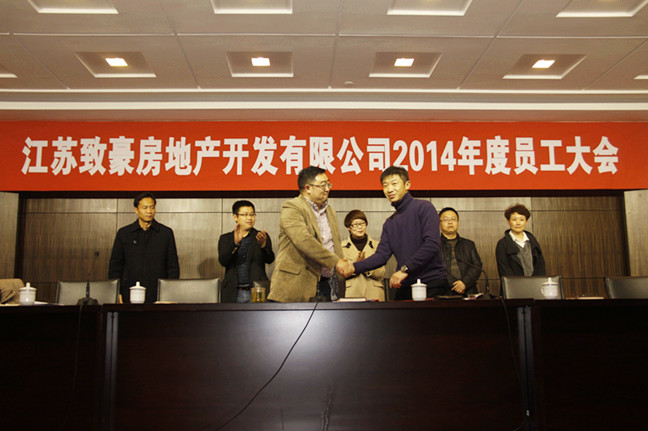 2月27日,江苏致豪房地产开发有限公司举行了2014年度绩效目标任务责任书签订仪式,致豪地产全体员工参加会议。