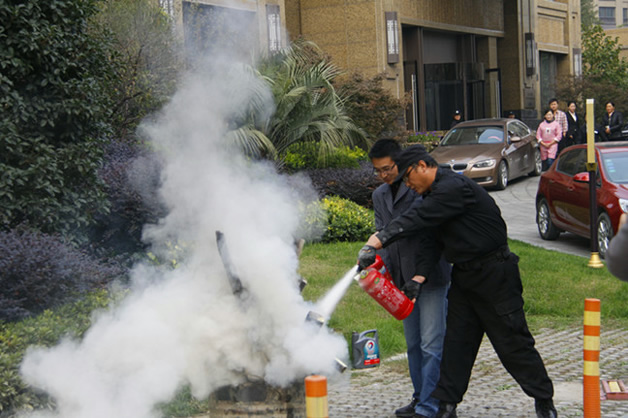 乾通物业市场配合部在演习前组织了消防预案培训,为演练做好充足的准备。下午2点演习正式开始,控制中心收到警报后确认火情真伪,根据火情大小立即启动义务消防队展开救援。现场客服人员通知所有办公人员从消防通道安全疏散,秩序员携带消防器材到达火灾现场实施救火,工程负责人保障现场各项设备的正常运转,保洁人员负责现场受伤人员的救护。演习过程中,救援小组第一时间用干粉灭火器将火势扑灭,物业消防专员指导其他员工使用消防器材,掌握消防逃生技能及注意事项等。演习尾声,秩序员现场进行了军体拳表演,赢得了所有人的掌声,给消防演习画上了完美的句号。