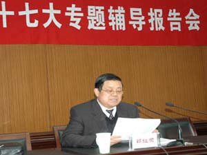 4月10日,公司党委特邀市政协学习文史委员会副主任、副教授郭继荣为工贸系统离休干部作了关于学习十七大精神的专题辅导报告。郭主任围绕十七大报告关于贯彻落实科学发展观的几个必须坚持、当前国际国内形势及存在的困难和问题、今后九项工作的大政方针等,作了深入浅出的讲解和分析。40余名离休干部参加报告会,对深入学习十七大精神表现出很高的积极性,表示将在促进社会发展、维护社会和谐等方面发挥余热,作出应有贡献。