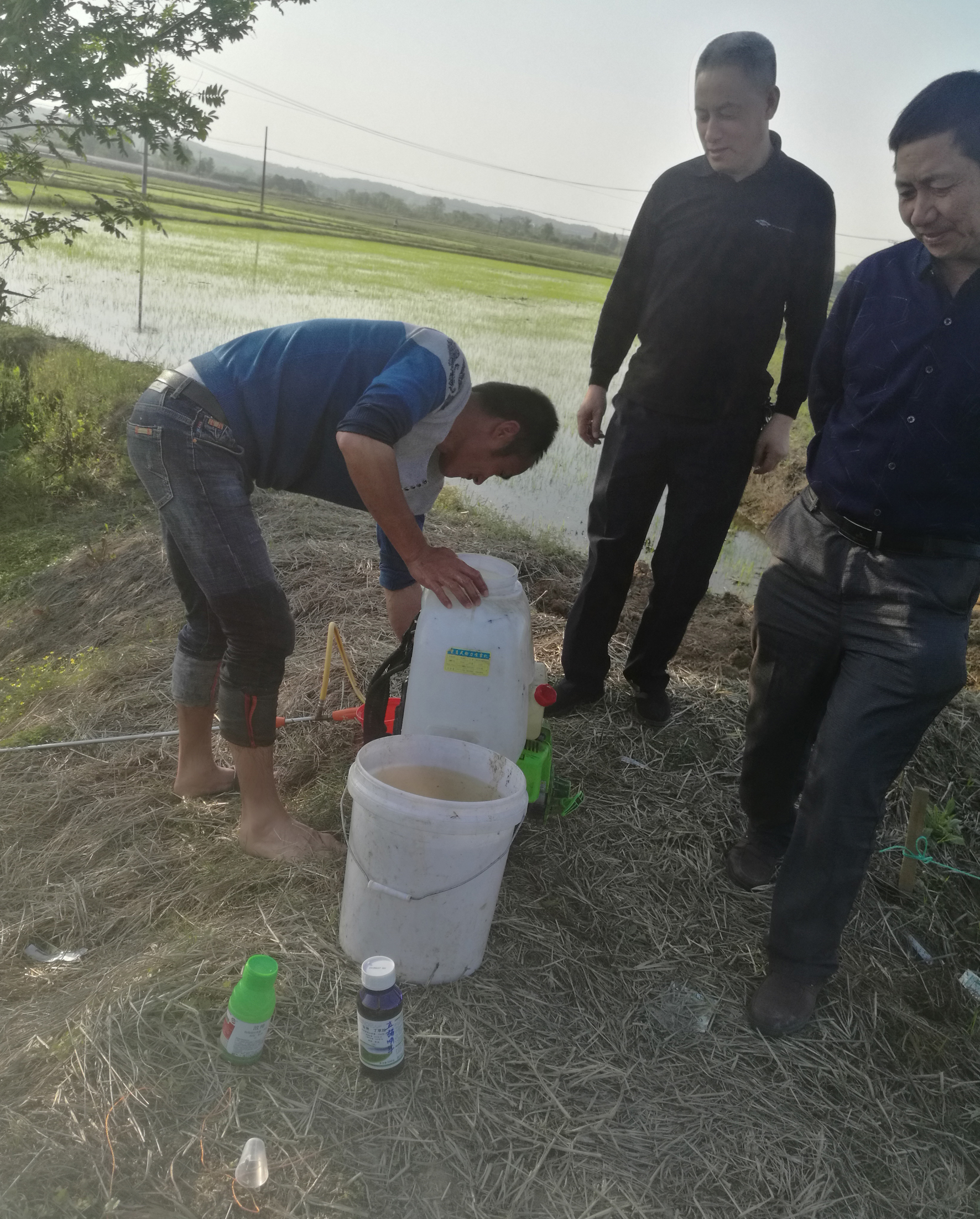 在渠道经销商和农户一筹莫展的时候,江山制剂销售团队的领导及小伙伴们通过零售端的走访、田间地头的试验,发现江山“封杀灵”(敌稗·丁)复配制剂可以有效、快速杀灭田间的大龄稗草和千金子,给被杂草肆虐的水稻田送来夏日的一抹清凉。