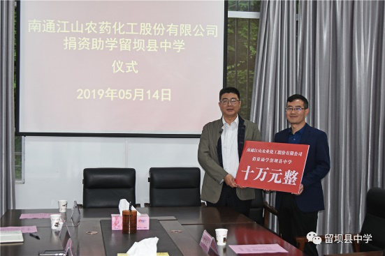献上一份爱心,托起一片希望。在这个孕育希望的季节,2019年5月14日南通江山农药化工股份有限公司捐资助学留坝县中学仪式在留坝县中学会议室举行,捐资助学仪式由留坝县中学校长杨锃主持。