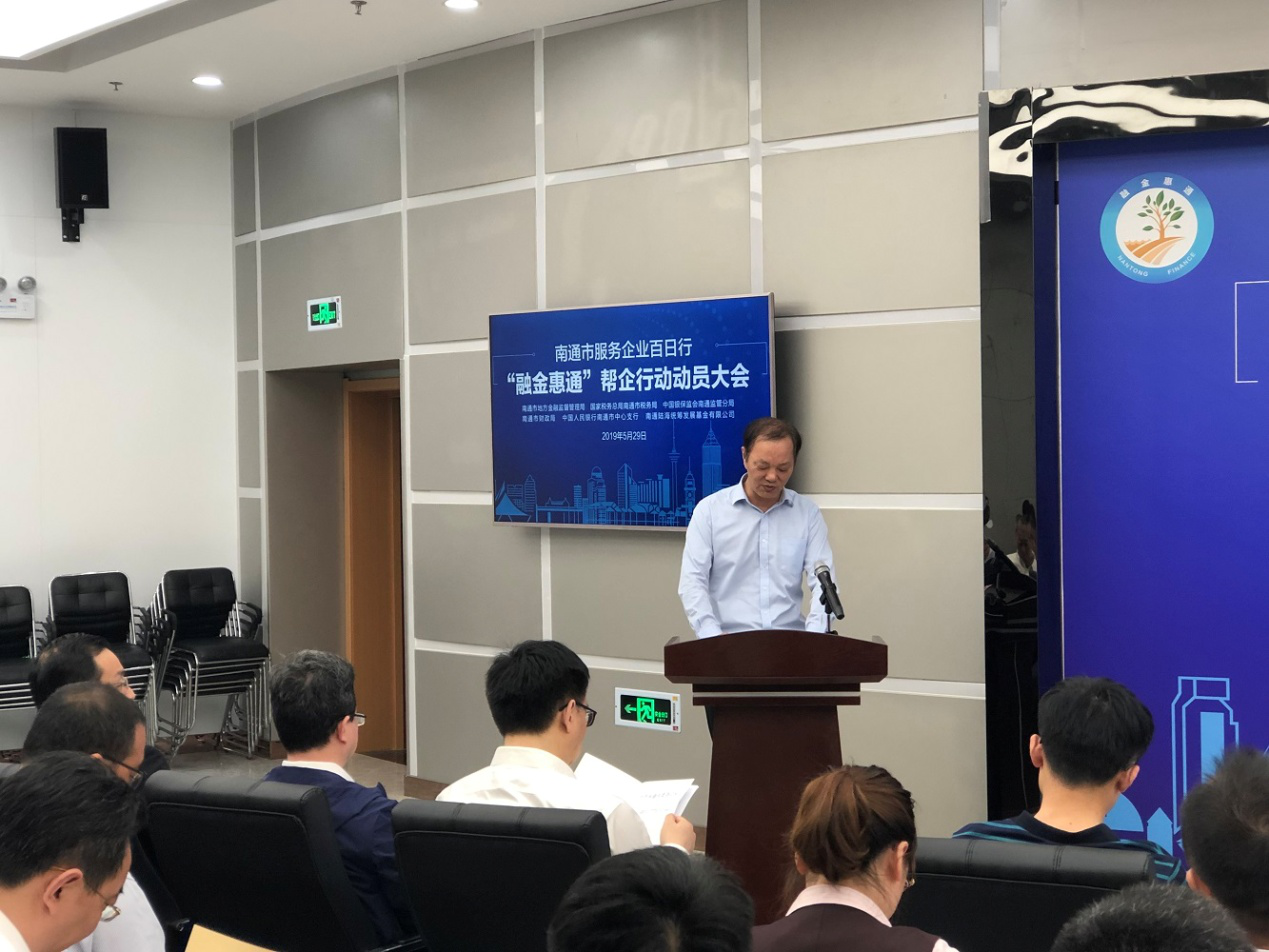 5月29日上午,南通市地方金融监督管理局在市中小企业金融服务中心路演大厅召开“融金惠通”帮企行动动员大会。大会由南通市地方金融监督管理局局长张乃华主持,南通市市委常委、常务副市长单晓鸣出席大会并致辞,博彩公司排名 副董事长顾建国作为南通陆海统筹发展基金代表及“融金惠通”帮企行动市直二分队队长进行了表态发言。