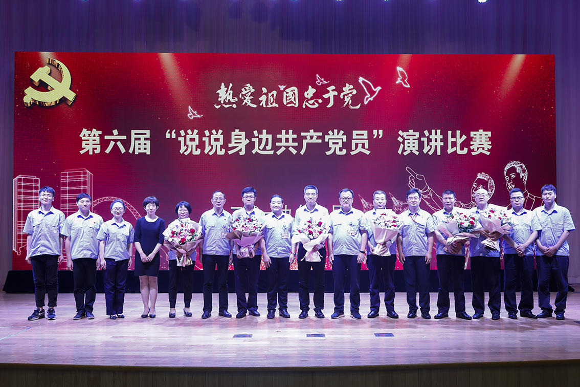 来自各基层党支部的施天凤、王强等7名演讲者声请并茂地为大家讲述了身边优秀党员的先进事迹,赢得了现场无数喝彩。 演讲比赛结束时,7位演讲事迹主人公上台与大家见面,公司领导为他们献上了最美丽的鲜花,并现场与远在非洲工作的演讲事迹主人公李红飞进行了视频连线,送去了关心和问候,全体参会人员为他们送去了最热烈的掌声。