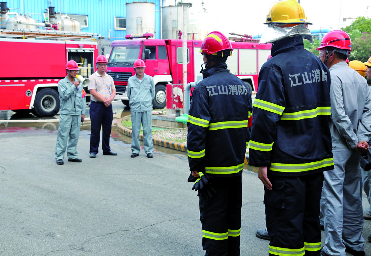 开发区环保局副局长孙同志,江山股份董事长兼总经理、党委书记薛健参加了演练全过程。