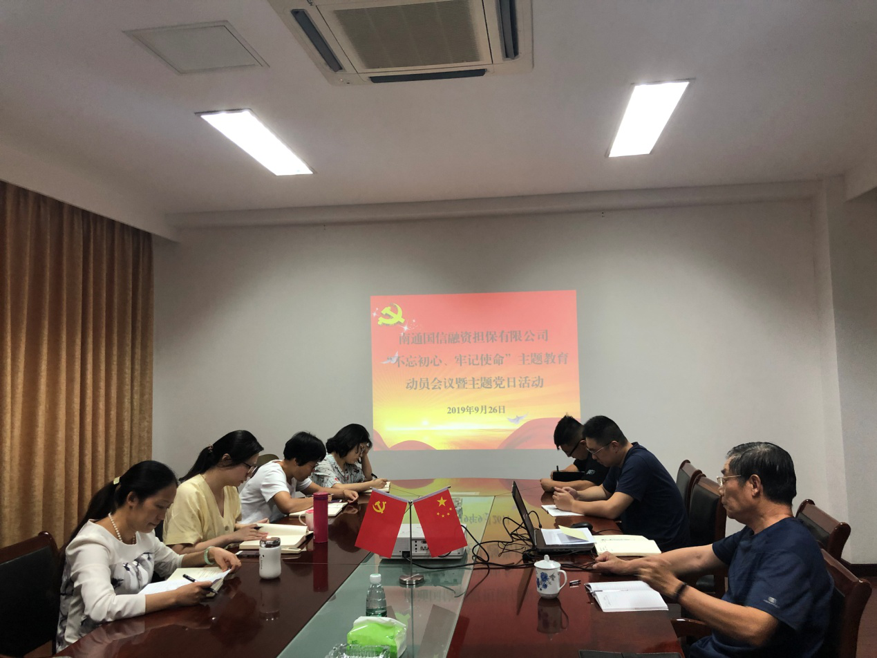 9月26日下午,南通国信投资担保有限公司召开“不忘初心、牢记使命”主题教育动员会,公司全体党员参加会议,入党积极分子和群众代表列席会议。