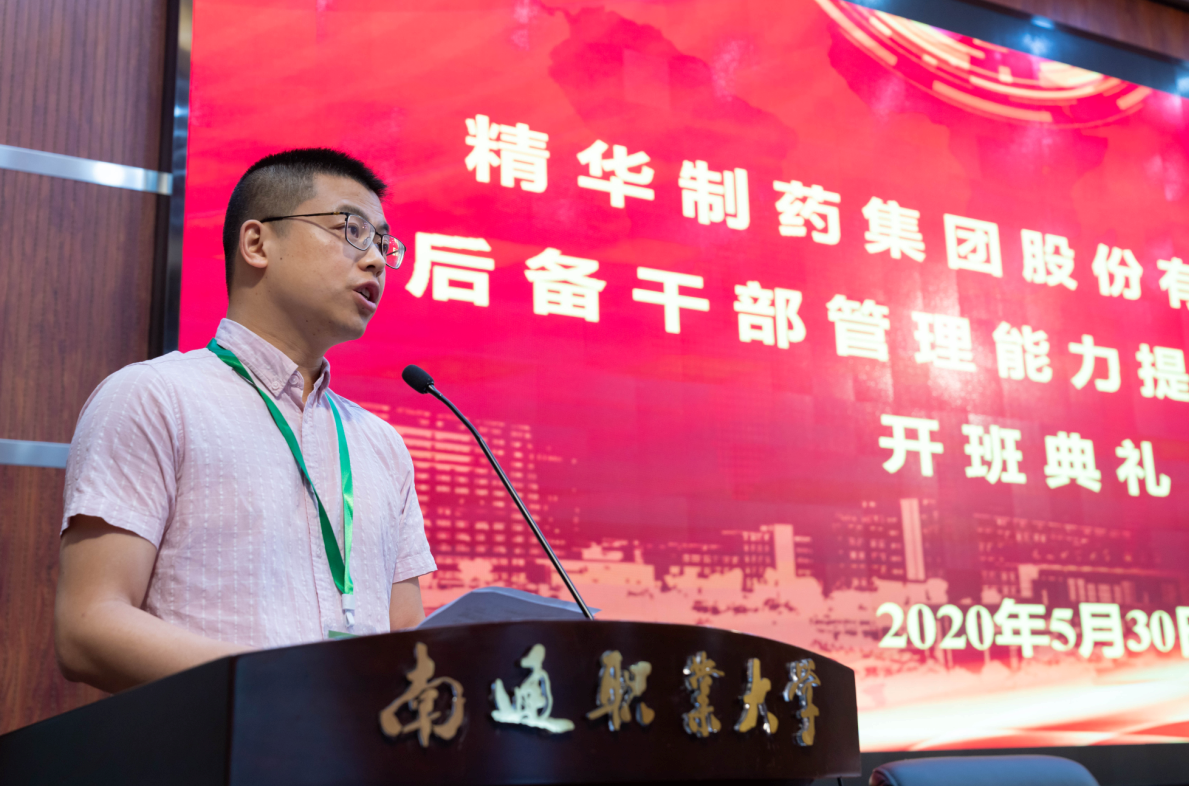5月30日,首期精华制药后备干部培训班在南通职业大学图书馆报告厅正式开班。集团公司党委副书记钱卫峰、人力资源部副总经理徐慧、南通职大党委书记羌毅等人出席本次开班仪式。南通职大继续教育学院王鑫明院长主持了本次开班仪式。