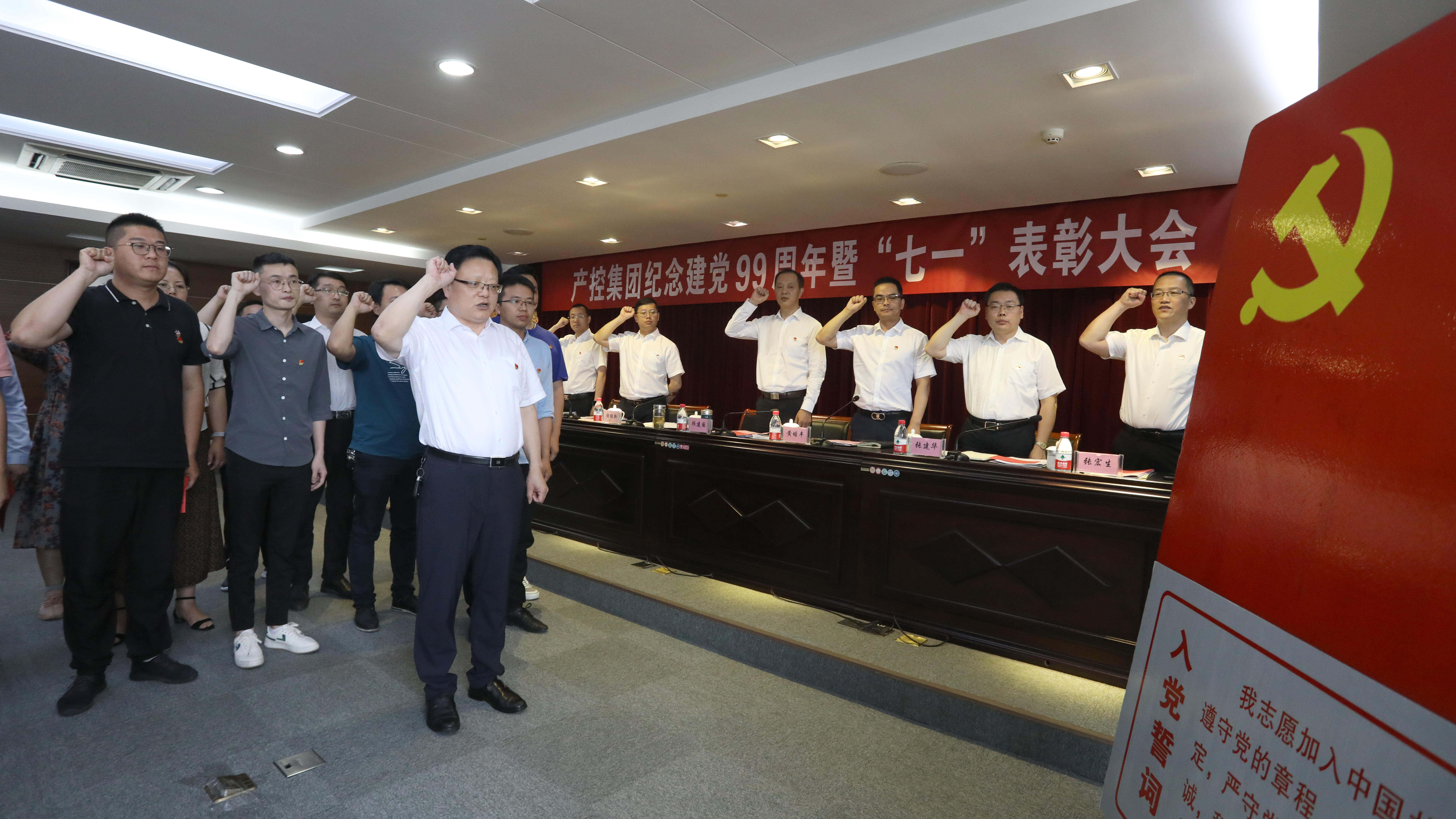 集团党委副书记、副董事长、总经理陆强新带领新党员举行入党宣誓仪式,全体与会党员庄严起立,举起右拳,重温入党誓词。