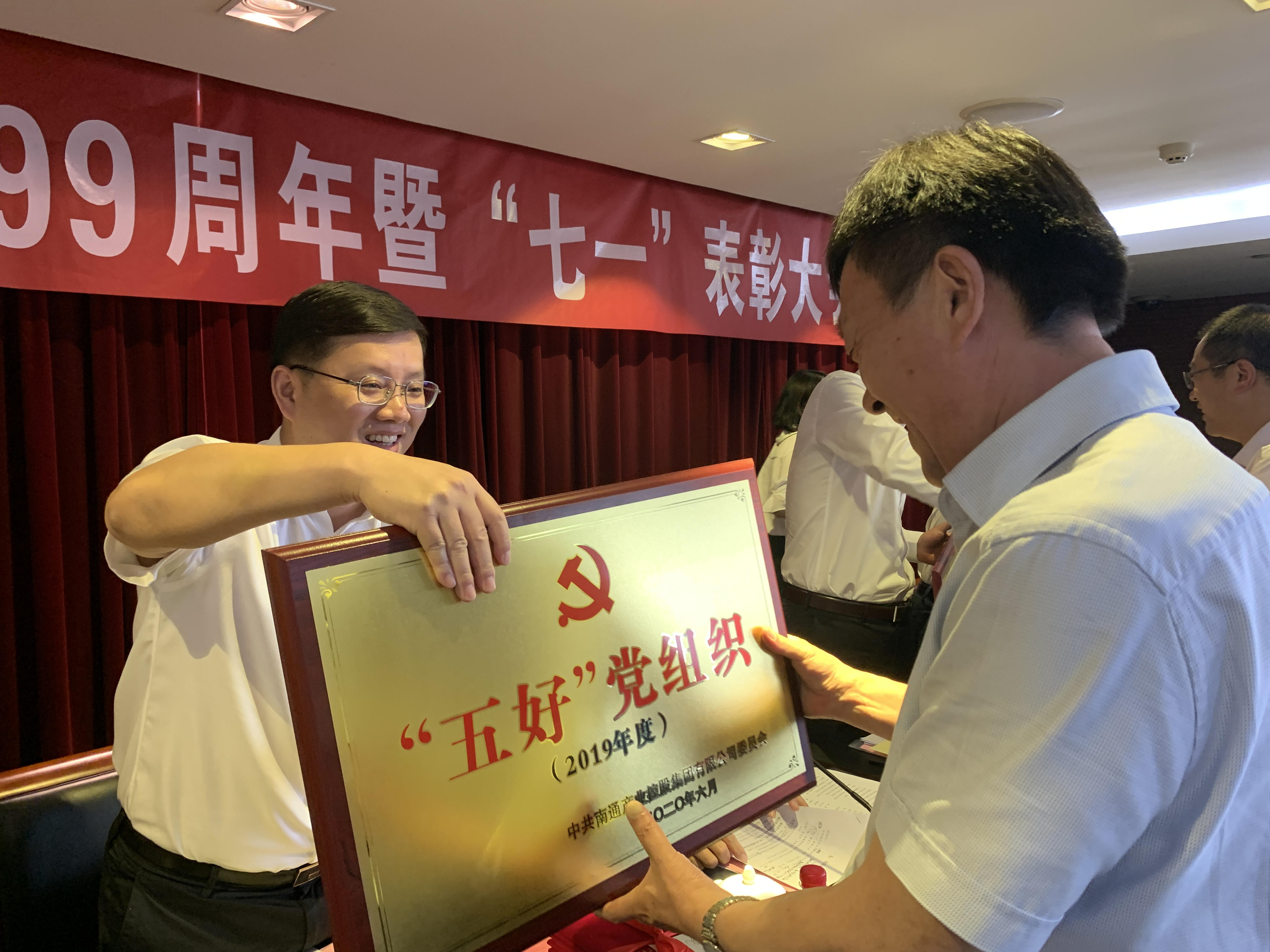集团党委副书记黄培丰宣读了《关于表彰2019年度“五好”党组织优秀党员、优秀党务工作者的决定》,分别授予南通江山农药化工股份有限公司党委等5个基层党组织“五好党组织”荣誉称号,授予薛健等33名同志“优秀党员”荣誉称号,授予张琴等9名同志“优秀党务工作者”荣誉称号,集团领导班子成员为获得以上荣誉的党组织和个人颁发奖状。