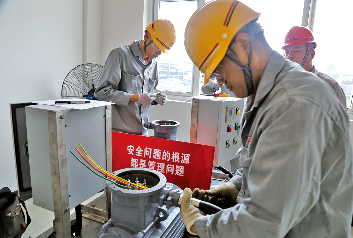 股份公司党委副书记、工会主席樊文新作动员。股份公司电气主任工程师梁涛宣布比赛规则。 随着比赛正式开始,选手们大展身手,对设备“望闻问切”,纷纷展示各自扎实的功底和技能水平。 本次电气专业比武由农二事业部承办。比赛内容为电动机安装调试,评委对整个安装调试过程中劳动防护、上锁挂签、设备检查、拆盖、安装接线、紧固、送电的操作、记录等环节的规范性进行评分。