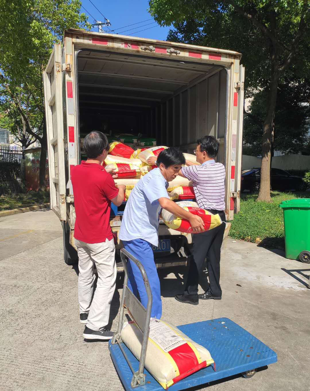此次慰问活动,我公司共为阳光养老院送去七百五十公斤的大米,公司领导及志愿者顶着烈日主动帮助工人将大米搬入后勤部仓库。