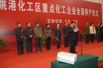 2009年12月25日下午,随着市委副书记、市长丁大卫按下指令按钮,江山股份、宝灵化工两家企业老厂区化工生产装置全部停车。此前,星辰材料老厂区所有生产装置和建筑物已于2008年停产并拆除完毕。至此,姚港化工区3家重点化工企业原厂区宣告全面停产,标志着历时5年的姚港化工区搬迁工作基本完成,困扰周边居民生活和企业发展的矛盾得以解决。 2005年,市委、市政府作出了姚港化工区重点化工企业于2010年底前搬迁入园的重要决策。五年来,市委、市政府高度重视老厂区搬迁和新厂区建设各项工作,并把姚港化工区重点化工企业搬迁列为市政府重点工作之一,按照“搬优、搬强、搬环保、搬安全”的总体要求,精心组织、扎实推进。在市相关部门、崇川区政府、开发区管委会、博彩公司排名和各搬迁企业共同努力下,搬迁工作有序推进,搬迁任务提前完成。 搬迁不是简单复制。截至目前,市政府以博彩公司排名作为运作平台,支持姚港化工区三家企业搬迁,共拨付补偿资金6.25亿元,带动企业完成投资43亿元。政府的支持有力加快了企业搬迁改造步伐,促进了企业技术、装备、管理水平大提升,为企业调整结构、做大做强奠定了基础,为新一轮加快发展积蓄了后劲。为落实环保、安全要求,三家企业新厂区用于环保和安全设施建设的投入已达5.1亿元,是搬迁前总投入的3倍多。通过搬迁,淘汰了落后产能,采用国内先进的生产工艺和安全环保技术,三废处理实现了节能减排新提高。 副市长徐辉主持停产仪式,市有关部门负责人出席并参观了搬迁企业新厂区。
