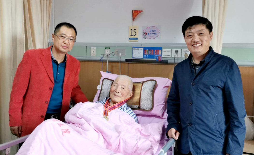 原煤炭公司94岁高龄的离休干部吴作明老人,因身体原因平时神智有些不清楚,但当看到慰问人员来看望并给他送抗美援朝纪念章时,神情一下子清醒过来,十分激动地向大家举手示意,眼里充满感激泪花。