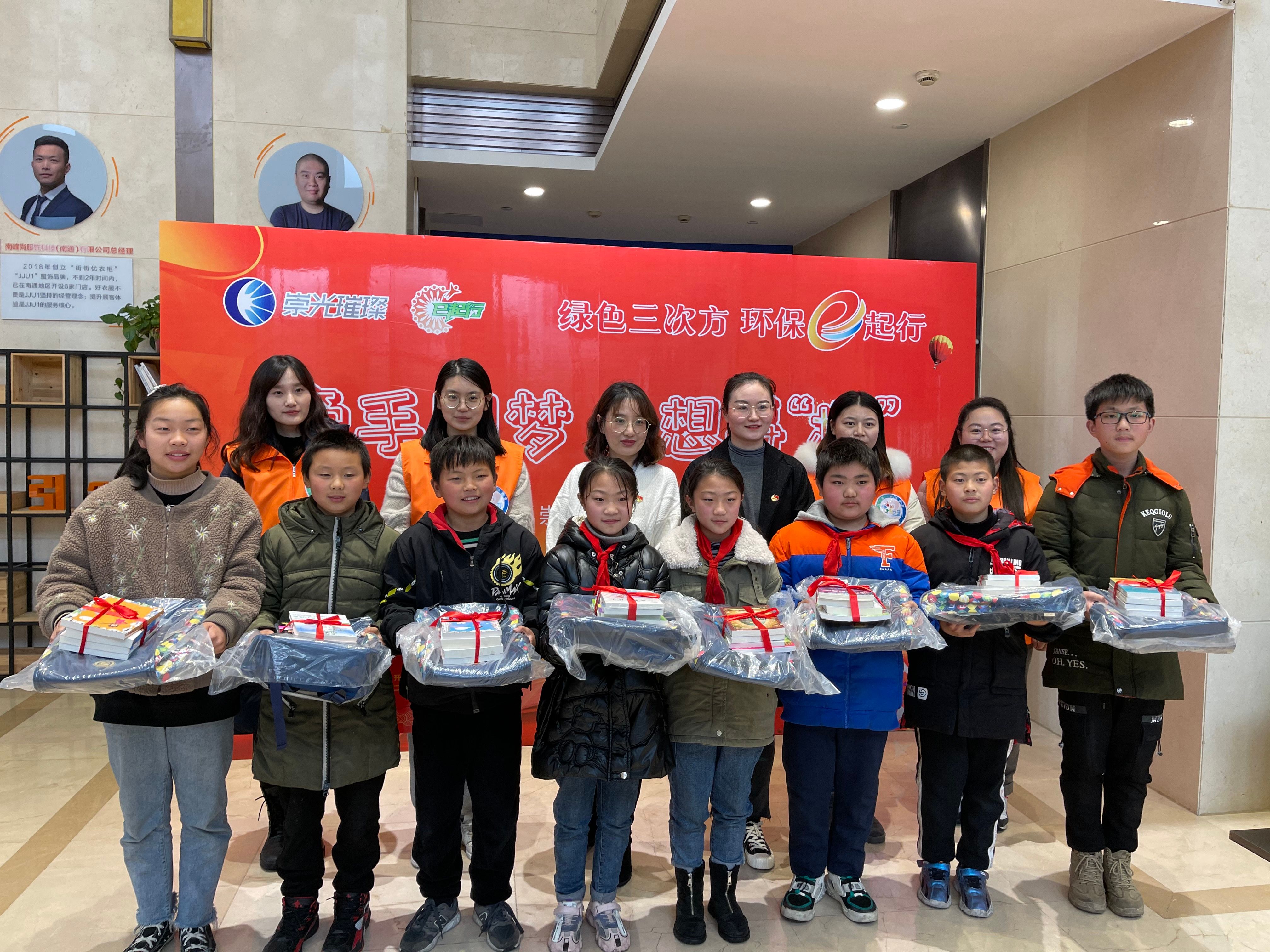 活动第二项内容为南通师范第二附属小学的学生与红旗小学、文华小学的新市民子女温暖牵手。经过前期的“微心愿”征集,不少新市民学生提出了文具、书籍、书包等“微心愿”,通师二附的学生认领其中部分微心愿,其余心愿则由园区企业认领。活动当天,国城园区楼宇企业中由国城公司与濠滨党员代表向新市民学生赠送了心愿礼物。 雨势变小后,大家共同种下“友谊”之树,希望孩子与小树苗一起茁壮成长。