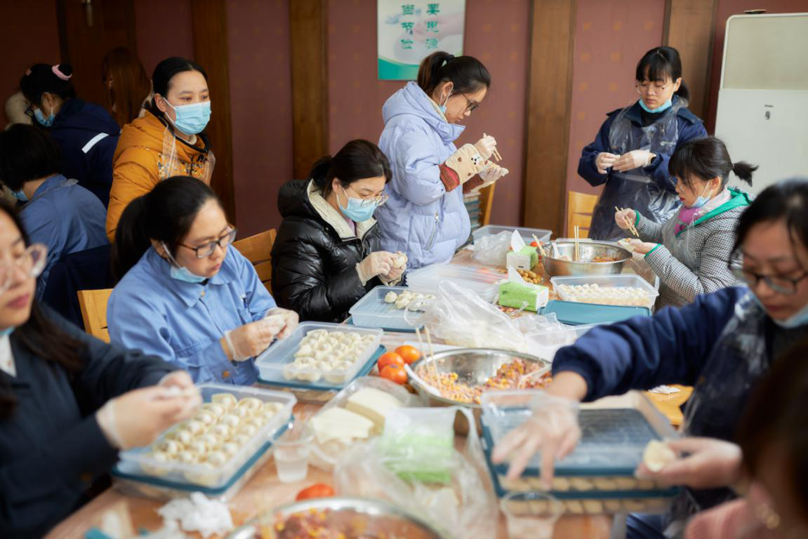 一大早,食堂工作人员就精心准备了满满当当的馄饨馅儿和馄饨皮,静候各位女神一展身手。活动中大家互相切磋厨艺,互相学习包馄饨的多种方法,在一片欢声笑语的和谐氛围中结束了此次活动。