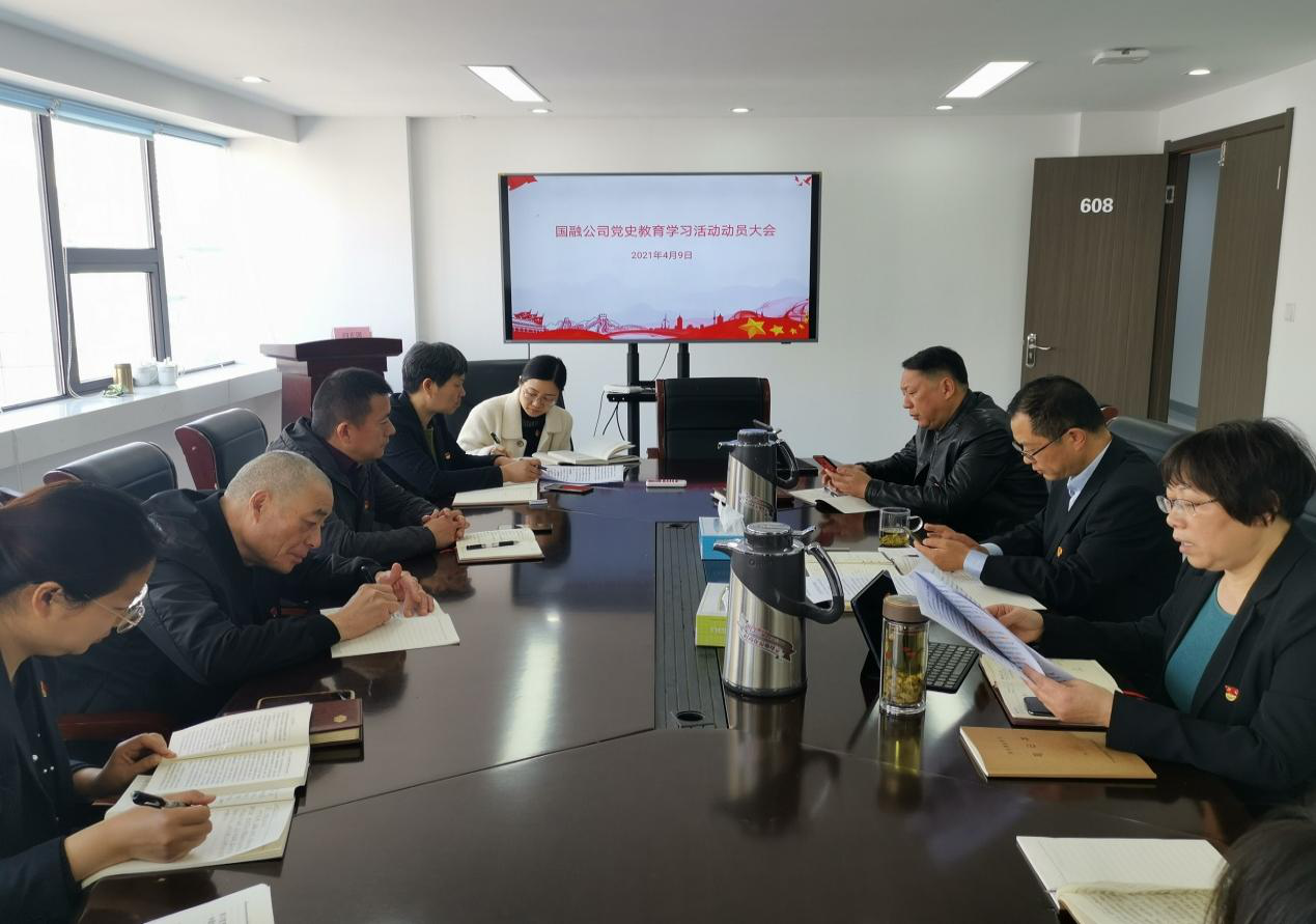 4月9日,国融公司党史学习教育动员大会在公司大会议室隆重召开,大会深入学习和贯彻习近平总书记在党史学习教育动员大会上的重要讲话精神及中共中央印发《通知》在全党开展党史学习教育精神,对党史学习教育进行了动员部署。会上,公司党委副书记、纪委书记王冠荣同志带领党员们学习《国融公司关于开展党史学习教育工作实施方案》,要求广大党员干部要学史明理、学史增信、学史崇德、学史力行,以优异成绩庆祝中国共产党建党100周年。