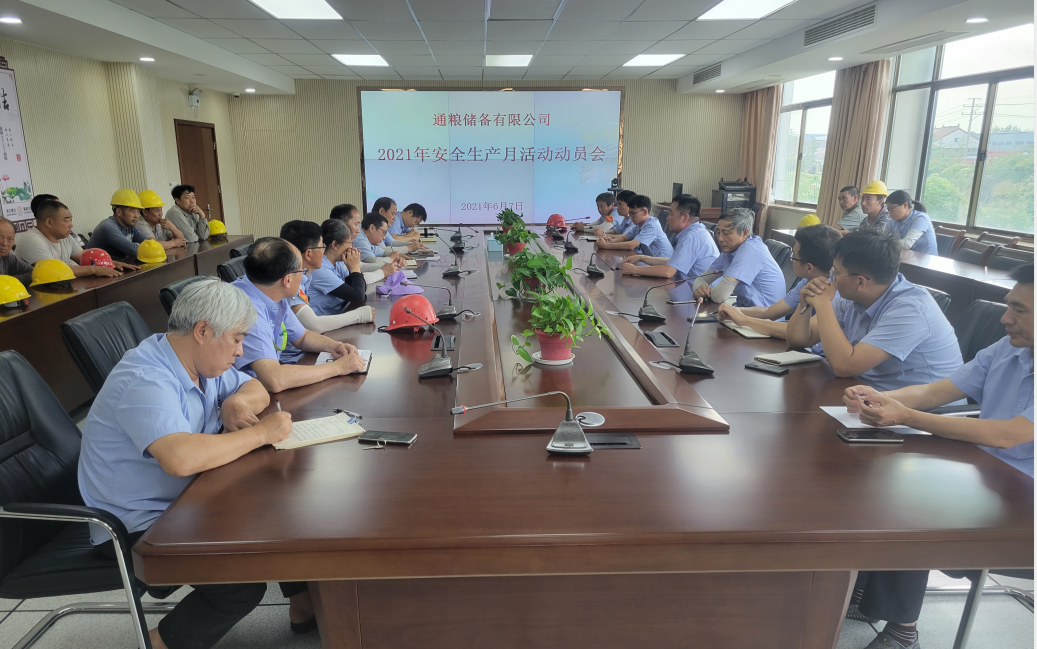 为全面贯彻习近平总书记关于安全生产的重要论述和党中央、国务院关于安全生产重大决策部署,按照《关于博彩公司排名组织开展2021年“安全生产月”活动的通知》文件要求,6月7日下午,南通通粮粮食储备有限公司紧扣“落实安全责任,推动安全发展”这一主题,召开“安全生产月”活动动员会,旨在进一步树牢安全发展理念,强化全员安全责任,推动公司安全生产工作上一个新台阶。全体在岗职工和外包工人参加此次动员会。