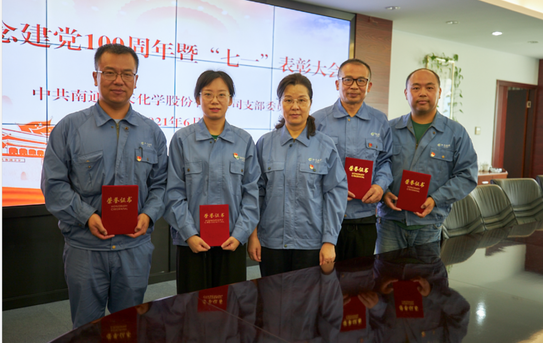 6月29日上午,南通江天化学股份有限公司党支部在公司四楼会议室召开纪念建党100周年暨七一表彰大会。支部全体党员、预备党员、发展对象和积极分子参加了此次会议。党支部书记陈梅主持会议。