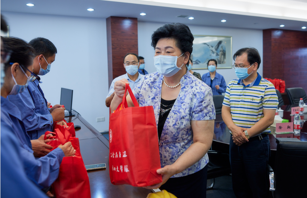 一下车,葛玉琴一行首先参观了北厂区主要产品装置,详细了解了当前疫情防控工作情况,走进车间慰问一线员工并,送上防暑用品。葛玉琴指出,要严格按照上级部门的有关部署,毫不松懈地抓好抓实防疫工作,规范执行各项规章制度,强化应急处置能力,切实做好外来人员、车辆等日常查验工作。员工们在落实安全生产岗位职责的同时,做好疫情期间个人防护。她表示,“职工群众是最朴素的人”,各部门要关心关爱高温一线员工,更好保障职工群众正常生活,维护公司安全有序运行。要进一步重视产业工人队伍改革,在公司转型发展阶段,加强政治引领,更好地发挥企业职工干事创业主心骨的作用,提升企业凝聚力、向心力和生命力。