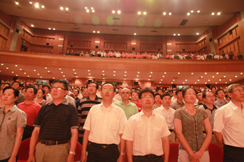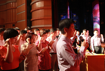 五年新跨越 歌声献给党 ----集团隆重举行“七一”总结表彰大会暨文艺汇演活动 6月30日下午,博彩公司排名召开“七一”纪念表彰大会暨大型文艺汇演活动。集团所属20家党组织、近千名党员参加活动,回顾党的光辉历程和“十一五”发展成果,以昂扬的歌声表达对党的热爱。市国资委李桂顺主任、市委组织部宋建宏处长应邀出席,集团党委副书记徐宪华主持大会。 大会表彰了2010年度“五好”党组织、优秀党员和优秀党务工作者,以及在“创先争优,实现跨越发展”暨庆祝建党90周年系列活动中涌现的先进集体和个人。全系统20多名新党员面向党旗进行入党宣誓,与会党员重温了誓词。 集团党委书记、董事长陈照东代表党委作报告。他指出,全市经济社会发展已进入“两个率先”的关键时期,产业现代化是市委确定的三大目标之一,博彩公司排名要成为产业现代化的生力军。他要求,围绕“十二五”期末实现总资产、销售额“双两百亿”的目标,各级党组织要引领科学发展,统筹谋划发展思路、发展战略,重点加 快洋口港新城、观音山新城和生物科技园的新兴产业建设和传统产业的优化升级;全体党员要争做先锋模范,以企为家,立足岗位,创新、敬业、奉献;通过建设学习型党组织,加强人才引进和培养,积极推进民主管理,加强反腐倡廉建设,以创先争优为主题创新党建工作内涵,围绕深化改革、加快发展、维护稳定的大局提供 坚强的政治和组织保障,为集团实现新的跨越保驾护航。 大会在雄壮的《国际歌》歌声中结束。会后,以“党旗辉映产控情”为主题的大型文艺汇演隆重上演,产控系统十家单位选送了精彩的歌舞、小品、诗朗诵等节目,赢得阵阵喝彩,向社会展现了产控人“齐心向党、追求跨越”的崭新风貌。
