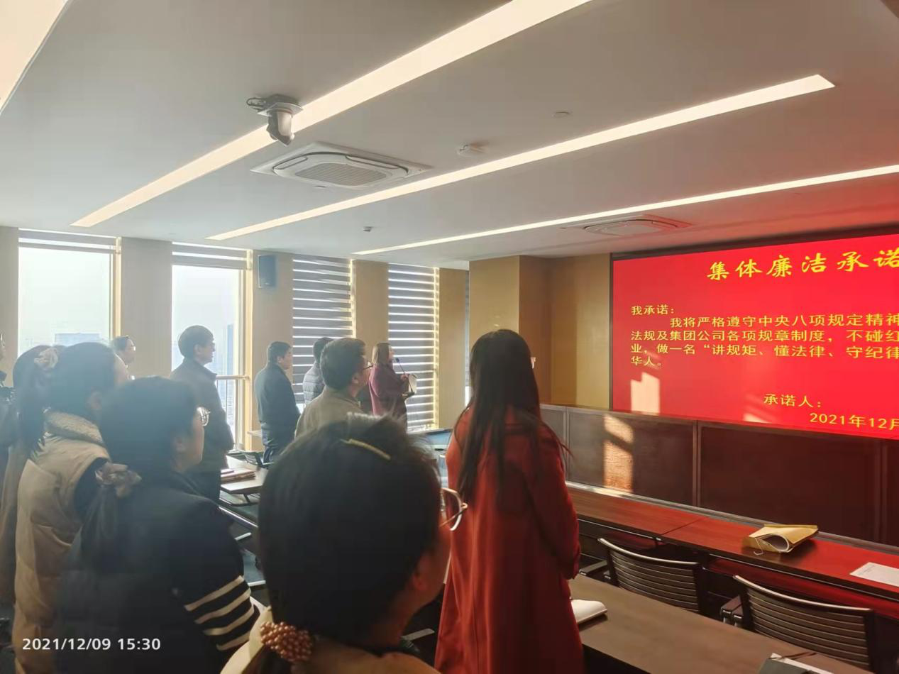 “我承诺:我将严格遵守中央八项规定精神,国家法律法规及集团公司各项规章制度,不碰红线,廉洁从业,做一名“讲规矩、懂法律、守纪律”的合格精华人。”一句句铮铮诺言,铿锵豪迈,在精华制药集团股份有限公司大会议室内响彻天地!原来这是精华制药集团党委副书记、纪委书记、工会主席曹燕红在领着大家一起开展集体廉洁承诺活动。