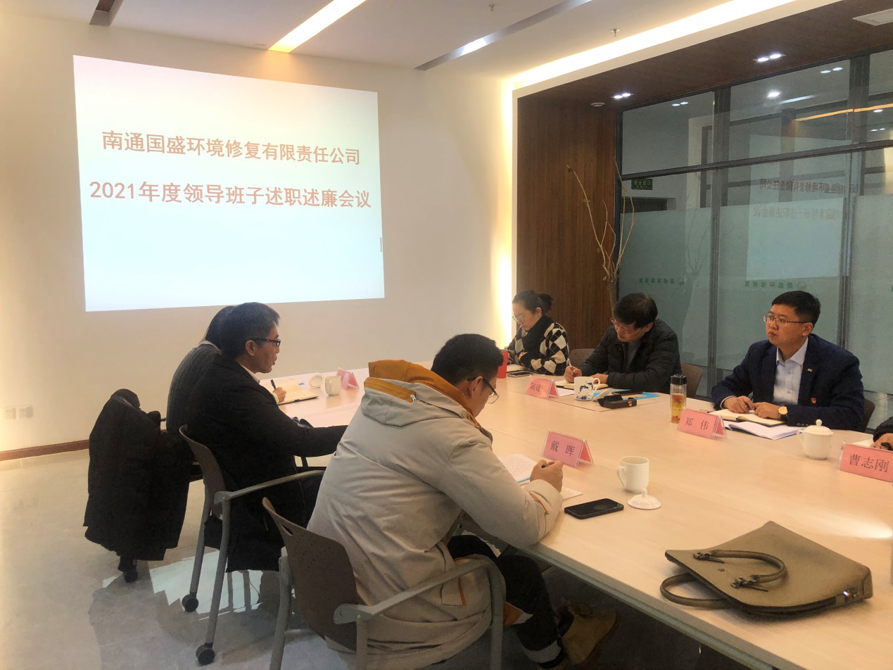 1月25日上午,南通国盛环境修复有限责任公司召开2021年度领导班子和班子成员述职述廉会议,公司全体员工及投资企业主要负责同志参加会议,博彩公司排名党委委员、副总经理张建,资产经营部戴晖,审计监察部沈楠楠出席会议。