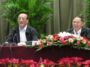 总社主任步正发主持会议,甘肃省委常委、副省长石军致辞(左起石军、步正发)