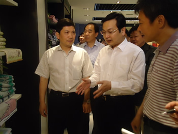 五月十六日上午,南通市委副书记、市长张国华到如东调研的第一站就来到大东公司。张市长在大东产品陈列室看到琳琅满目的高品质产品后,频频点头称赞。