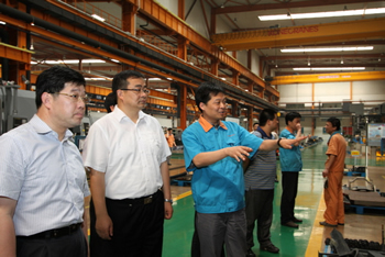 6月11日下午,南通市副市长黄爱军前来公司视察。在参观工厂过程中,公司总经理凌卫国向黄副市长一行汇报了公司产品研发及经营情况。黄副市长还仔细询问了公司的产品技术含量及当前的行业形势。参观结束时,黄副市长深有感慨地说:“尽管我对机械是个外行,但看了南通科技的现场,我感觉很舒服!”港闸区委书记沈雷、区长沈红星等领导陪同视察 。