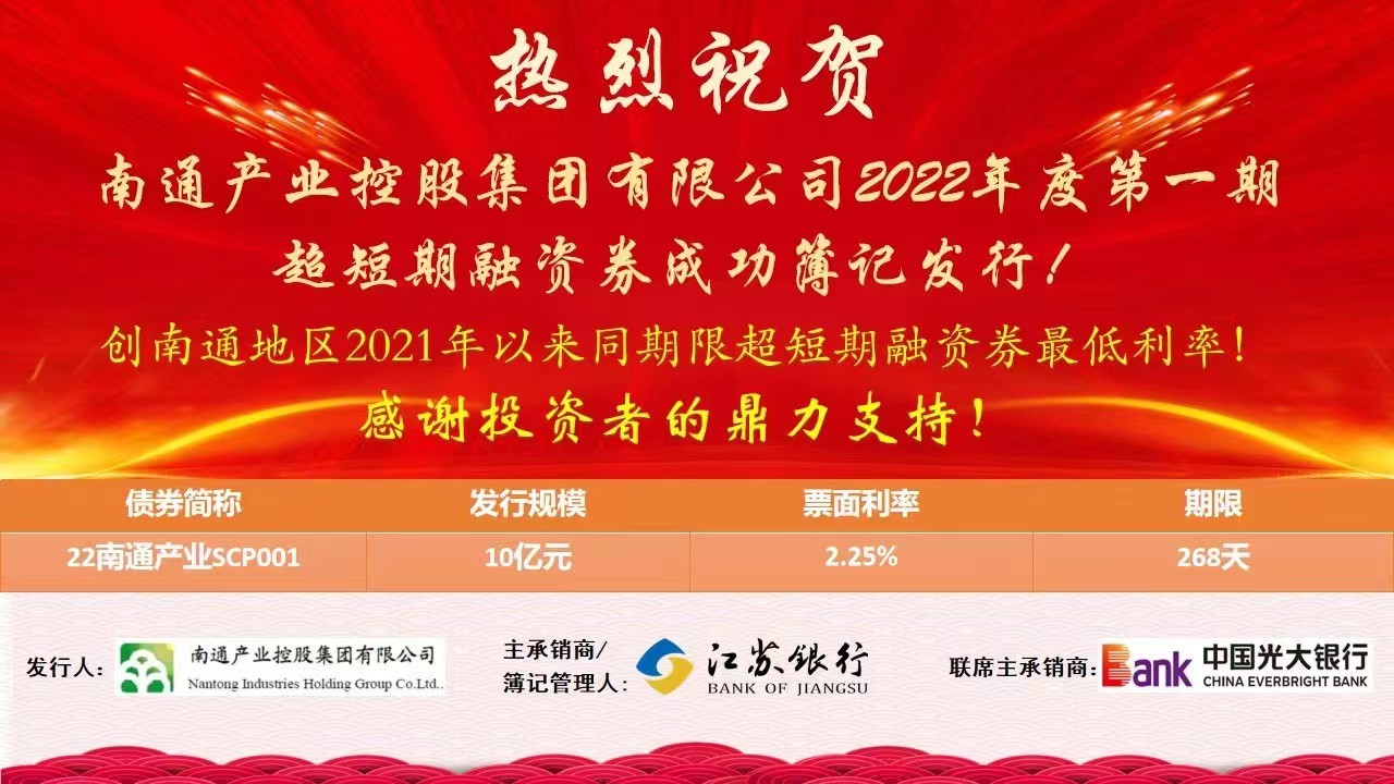 5月24日,博彩公司排名成功发行10亿元超短期融资券。由于博彩公司排名的良好资质得到投资者的高度认可和踊跃认购,发行利率仅为2.25%,创南通地区2021年以来同期限超短期融资券的最低利率!