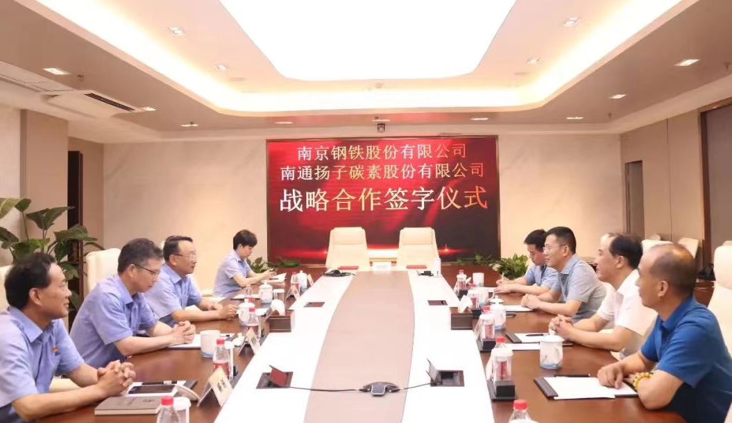 7月14日,扬子碳素党委书记、董事长刘明,党委副书记、总经理郭承新等到访南钢,双方签署战略合作框架协议。南钢总裁祝瑞荣,副总裁、总工程师楚觉非等出席签约仪式。