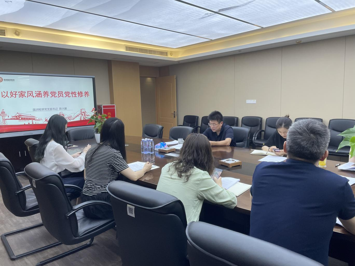 筑牢反腐倡廉的家庭防线,以纯正家风涵养清朗党风政风社风。国润租赁党支部书记陈大鹏同志以《以好家风涵养党员党性修养》为主题讲授专题党课,公司全体党员及入党积极分子参加。