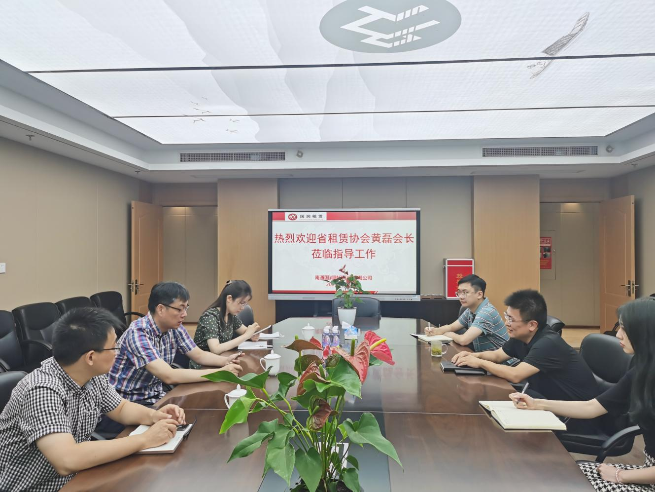 7月28日,江苏省融资租赁行业协会会长、江苏省国际租赁有限公司董事长黄磊一行莅临国润租赁调研指导工作。国润租赁董事长陈大鹏、业务部部长王笑天等陪同调研。