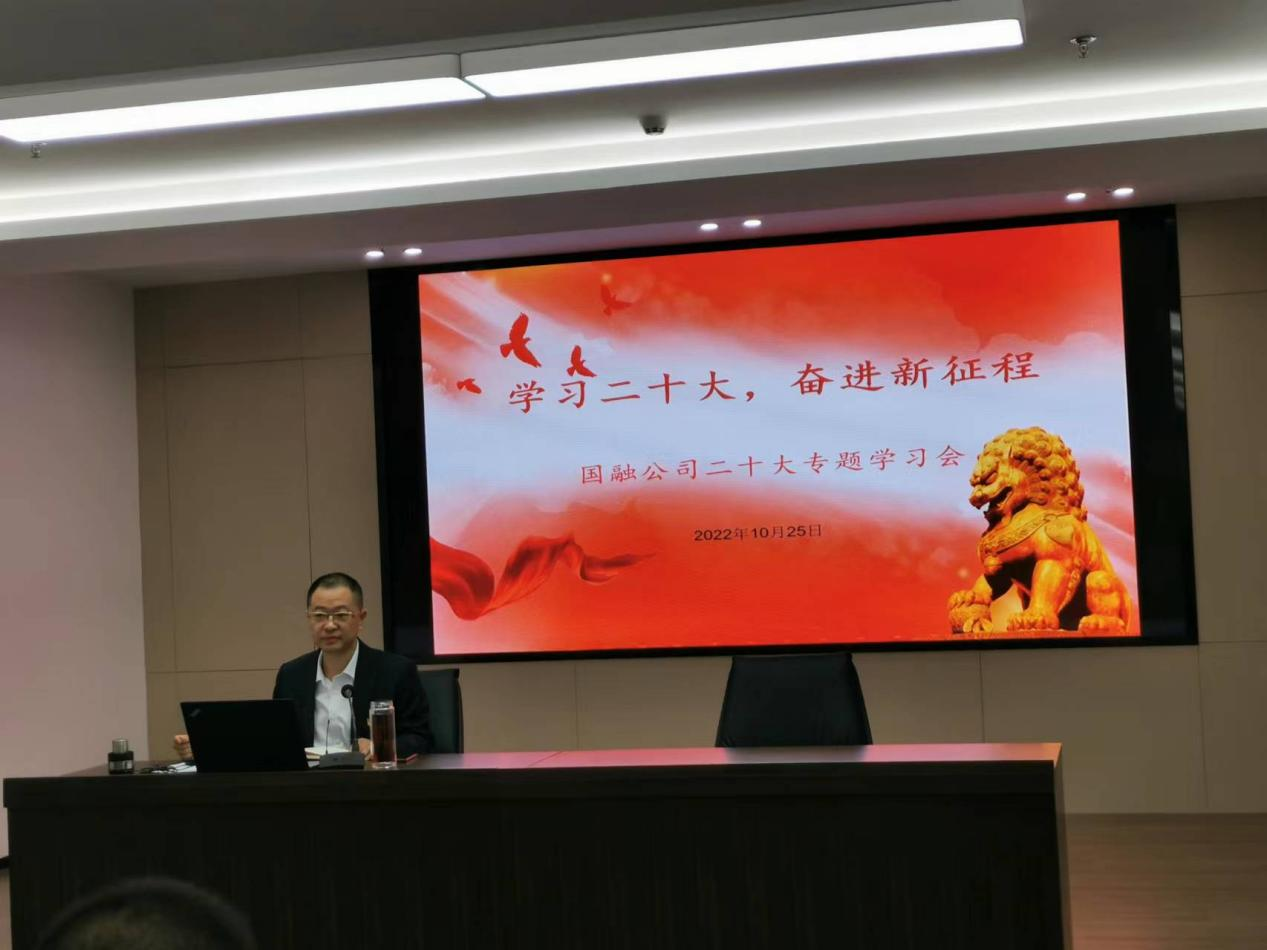 会上,刘海兵指出党的二十大报告高屋建瓴、总揽全局,总结了过去五年的工作和新时代十年的伟大变革,宣示了新时代新征程中国共产党的使命任务,规划了全面建成社会主义现代化强国的战略安排,是引领全国人民全面推进中华民族伟大复兴的伟大行动纲领。报告指出,高质量发展是全面建设社会主义现代化国家的首要任务,明确了推动高质量发展的重大战略举措。国融公司作为国有企业,在行动上要坚决与党的二十大精神对标对表,要深入推进国企改革,推动企业迈向高质量发展。