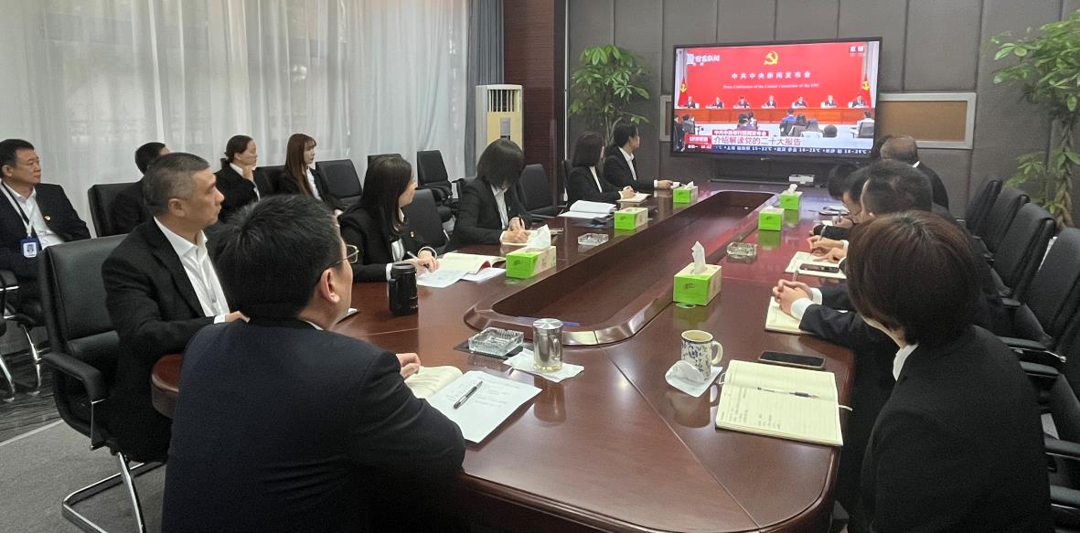 会议集中观看了中共中央介绍解读党的二十大报告新闻发布会,结合发布会所介绍的“新时代十年的伟大变革、推动高质量发展、推进法治中国建设、健全全面从严治党体系”等内容,国泰公司党总支委员、副总经理夏颖为全体党员、管理人员讲授了一堂以“学习领会新理论,奋力谱写新篇章”为主题的党课,带领大家进一步领会党的二十大报告内容。