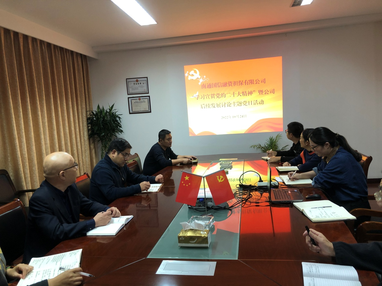 10月24日下午,国信担保公司党支部组织开展了“学习宣贯党的二十大精神”暨公司后续发展讨论主题党日活动,公司全体工作人员参加了活动。
