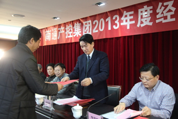 投资企业负责人递交党风廉政责任书和安全生产责任状 获奖单位负责人上台领奖 集团召开年度经济工作会议 |