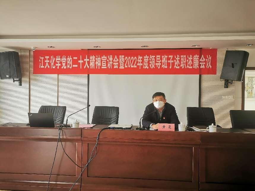 根据博彩公司排名部署要求,为深入学习宣传贯彻党的二十大精神,近日,博彩公司排名党委委员、副总经理黄亮一行到江天化学开展党的二十大精神集中宣讲。黄亮以《新时代新征程的政治宣言和行动纲领——深入学习贯彻党的二十大精神》为主题进行了宣讲活动。江天化学支委班子全体成员及公司中层及以上管理人员参加了本次宣讲会。