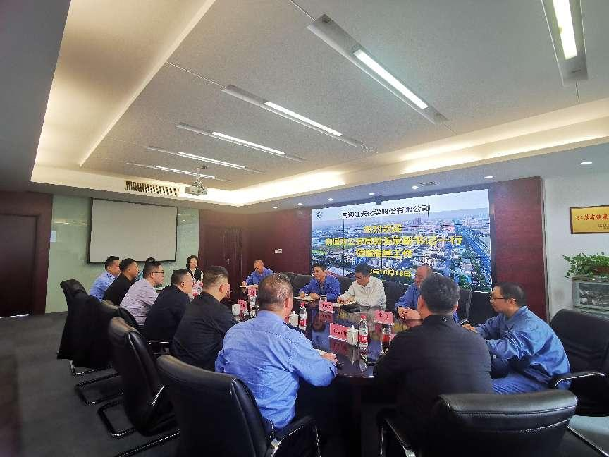 全方位深度拧紧安全环保责任链条进一步提高企业环保本质化治理能力和水平,10月18日上午,南通市公安局党委副书记、副局长郭玉家一行来到南通江天化学股份有限公司开展工作走访调研江天化学党支部书记副总经理张永锋、党支部副书记、副总经理沙晓东、支部委员、副总经理任建军陪同调研参观