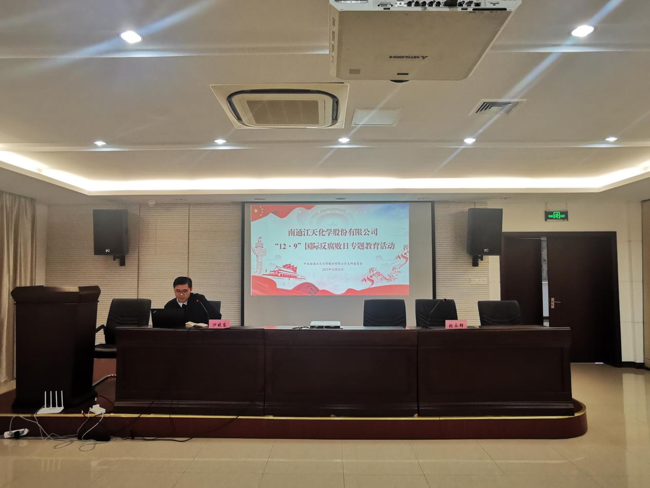 为持续筑牢公司广大党员干部群众廉洁从业风险底线意识,12月11日下午,南通江天化学股份有限公司党支部组织召开“12·9”国际反腐败日专题教育活动。会议由党支部书记、副总经理张永锋主持,公司全体党员、管理人员及相关部门人员参会。
