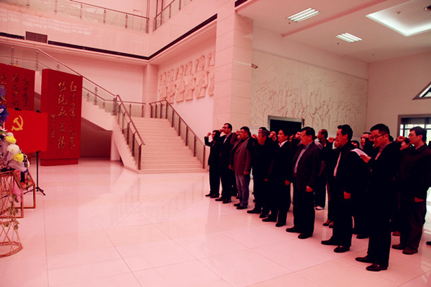 党员代表向革命先烈群体浮雕敬献花篮后,全体党员面对党旗重温了入党誓词。大家纷纷表示,要坚持发扬革命传统,继承、弘扬好革命传统精神,进一步加强党性修养,进一步密切与人民群众的血肉联系,进一步改进工作作风。