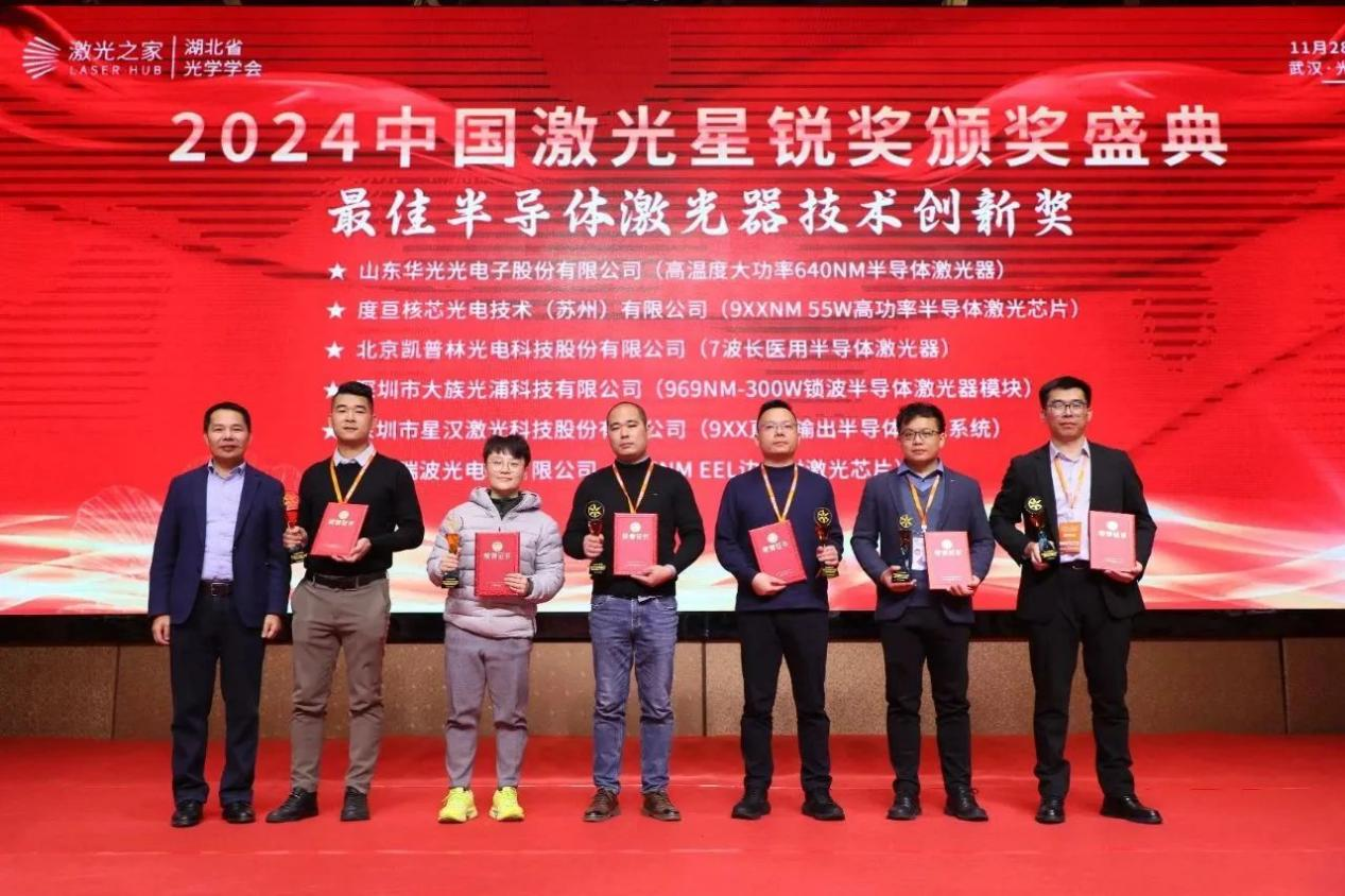 11月28日,“2024中国激光星锐企业峰会暨先进激光加工技术高峰论坛”及“中国激光星锐奖”颁奖典礼在武汉光谷盛大举行。历经专家评审、网络投票等严格评选,南通投管自管基金直投企业度亘核芯的“9xxnm 55W 高功率半导体激光芯片”在一众参评产品中脱颖而出,成功斩获“中国激光星锐奖・最佳半导体激光器技术创新奖”。