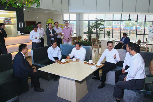 5月29日下午,海峡两岸关系协会会长陈德铭在市委书记丁大卫、市长张国华的陪同下视察了南通大学国家大学科技园众创空间。