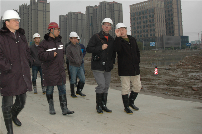 彼昂·安德森一行首先考察了南通宝叶化工、大伦化工、精华制药原料分厂及印染片区等6块退役场地,并对南通姚港化工区退役场地修复工程进行了实地考察,钱卫峰向彼昂·安德森一行详细介绍了姚港化工区土壤修复工程的项目现状、修复进展、以及治理效果等情况。