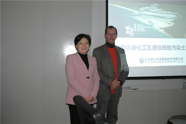 研讨会上,蒋楠先生就爱丝蔻公司二十多年来丰富的环境修复经验和成功案例作了介绍。彼昂·安德森先生详细介绍了爱丝蔻公司世界领先的生物制剂原位环境修复、有机污染物治理领域的先进技术和经验,并与姚港化工区土壤修复工程项目施工、质控、验收等单位相关技术专家就土壤修复技术、环境监测、持续涵养等相关问题进行了深入探讨和交流。